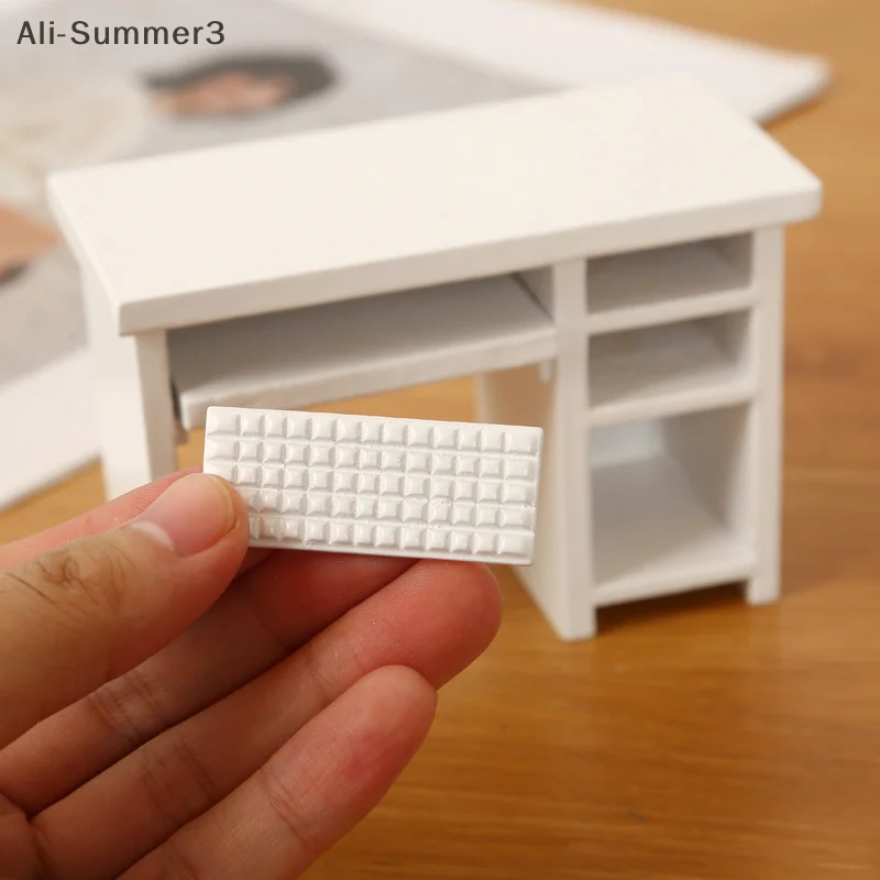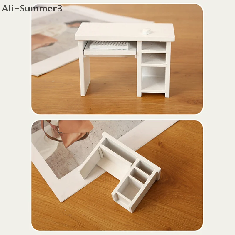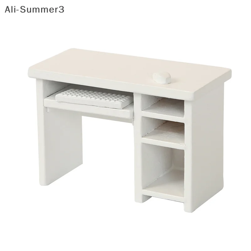 1/12 Dollhouse Wooden Computer Desk Mouse Keyboard Set Dollhouse Study Furniture Decoration Micro Scene Construction Props